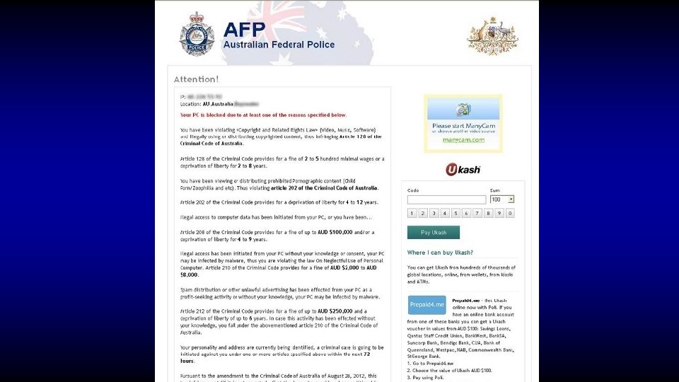 Australia Sep 2012 • 2 medical centres – server compromised - encrypted • then 4 medical centres • then 30+ businesses across the country • and the list is growing…
