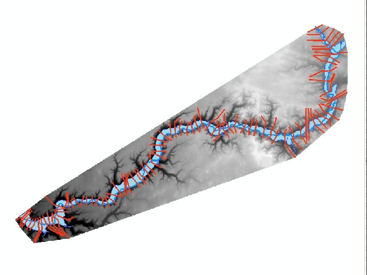 Li. DAR shaded blue to red, oblique view. Arrow shows perspective of next slide.