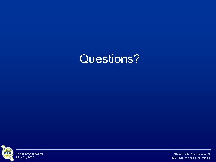 Questions? Team Tech meeting May 22, 2006 State Traffic Commission & DEP Storm Water Permitting