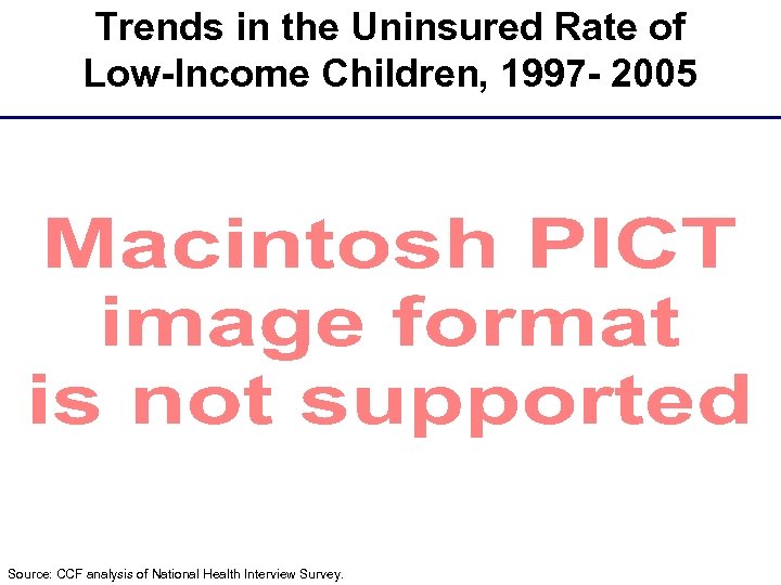 Trends in the Uninsured Rate of Low-Income Children, 1997 - 2005 Source: CCF analysis of National Health Interview Survey.