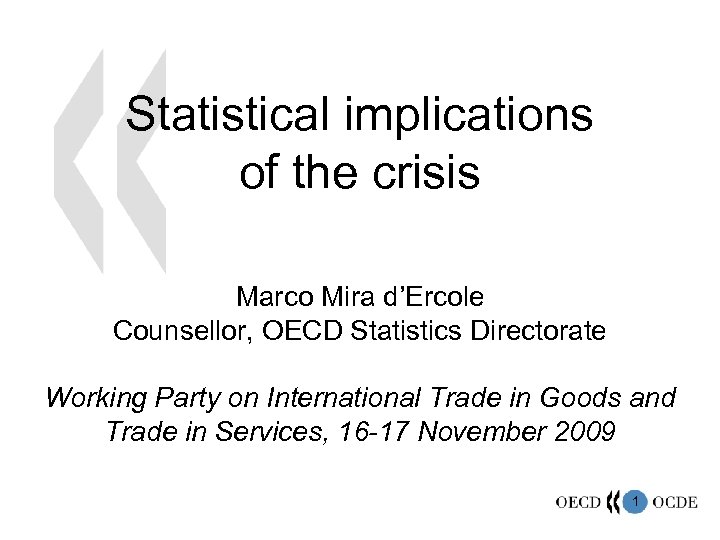 Statistical implications of the crisis Marco Mira d’Ercole Counsellor, OECD Statistics Directorate Working Party on International Trade in Goods and Trade in Services, 16 -17 November 2009 1