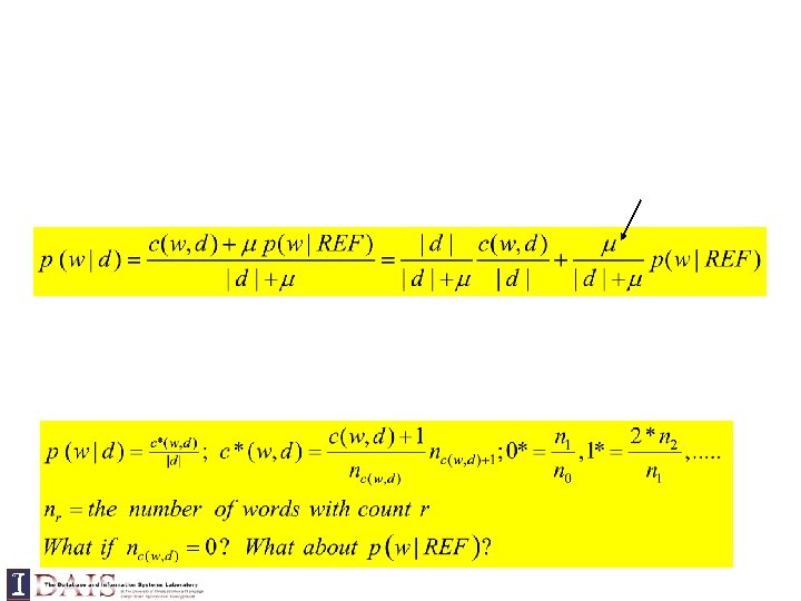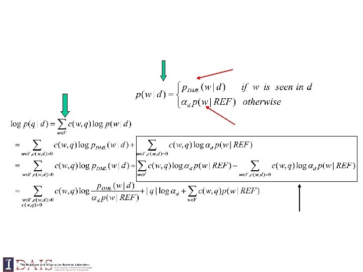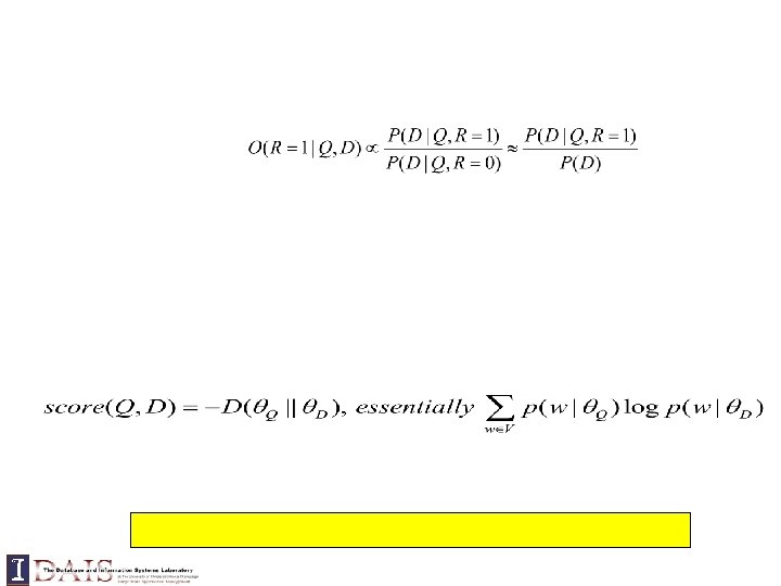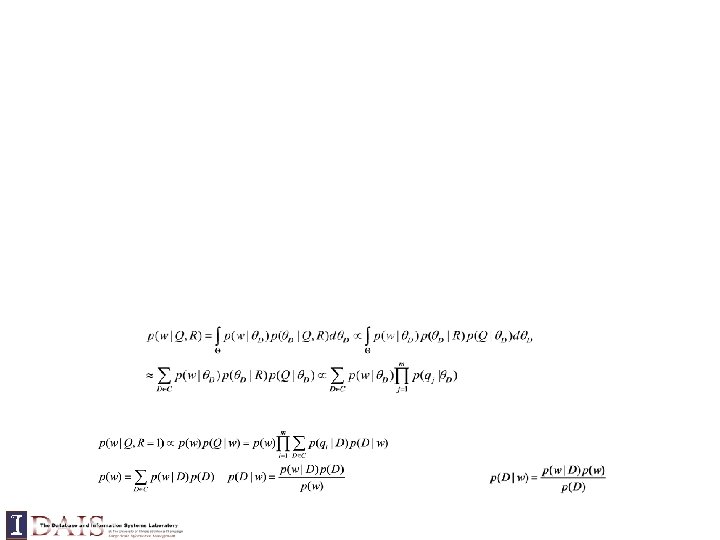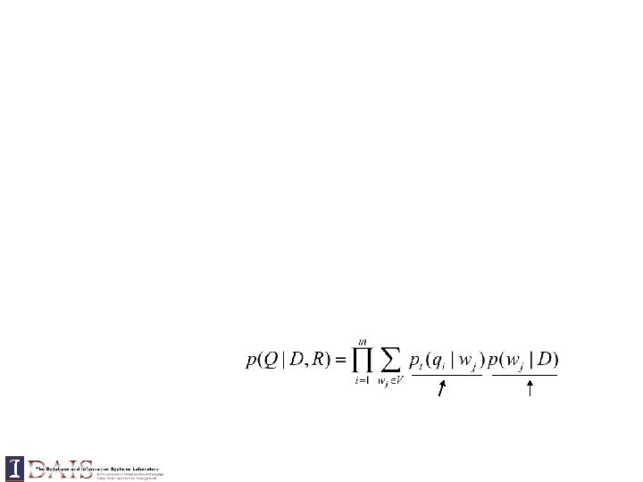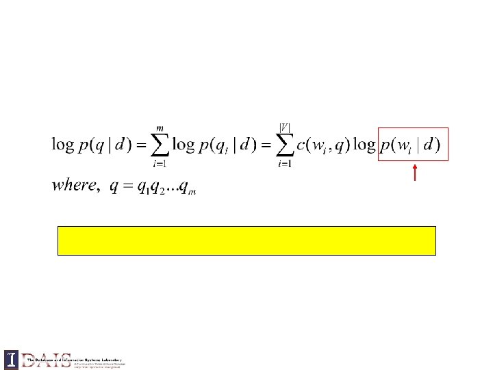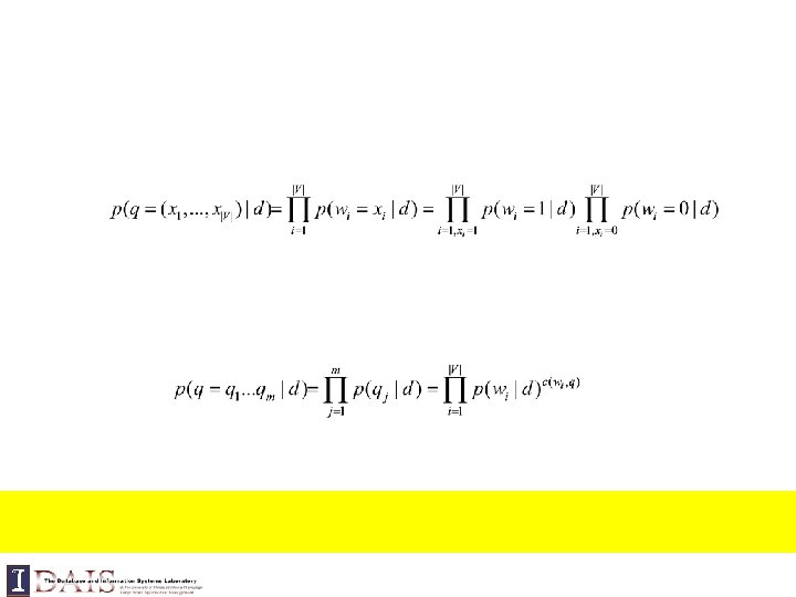 Query = “the algorithms for data mining” p( “algorithms”|d 1) = p(“algorithm”|d 2) p( “data”|d 1) < p(“data”|d 2) p( “mining”|d 1) < p(“mining”|d 2) Query = “the algorithms for data mining”