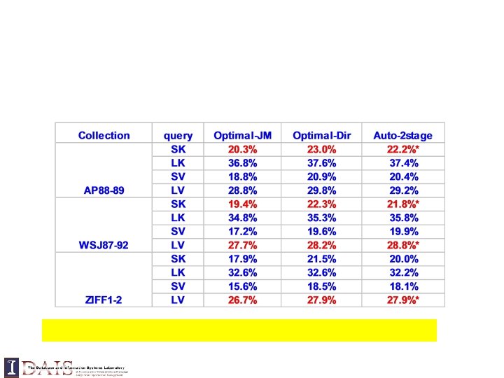 Trec topic 412: “airport security” Mixture model approach Web database Top 10 docs