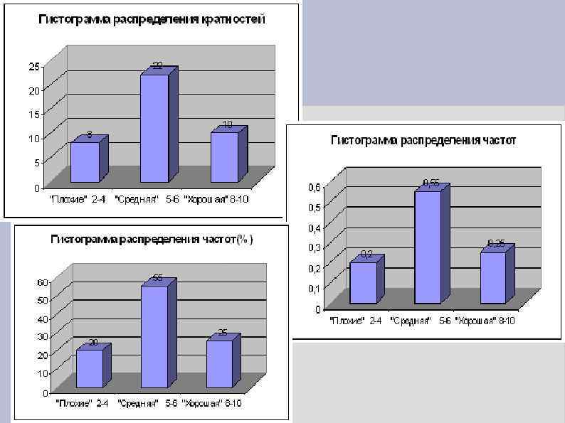 Гистограммы. Гистограммное распределение это ступенчатая фигура. Их строят, когда приходится первоначальную группировку данных проводить более крупными «блоками» . Это когда количество вариант измерения велико.
