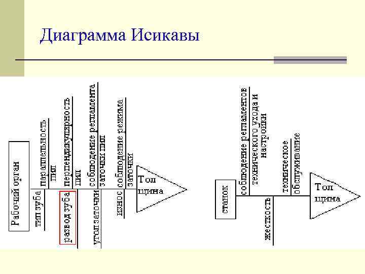 Диаграмма Исикавы - Причинно-следственная диаграмма — инструмент, позволяющий выявить наиболее существенные факторы (причины), влияющие на конечный результат (следствие). Достоинства: 1 – Наглядность; 2 Простота построения; 3 Удобства использования.
