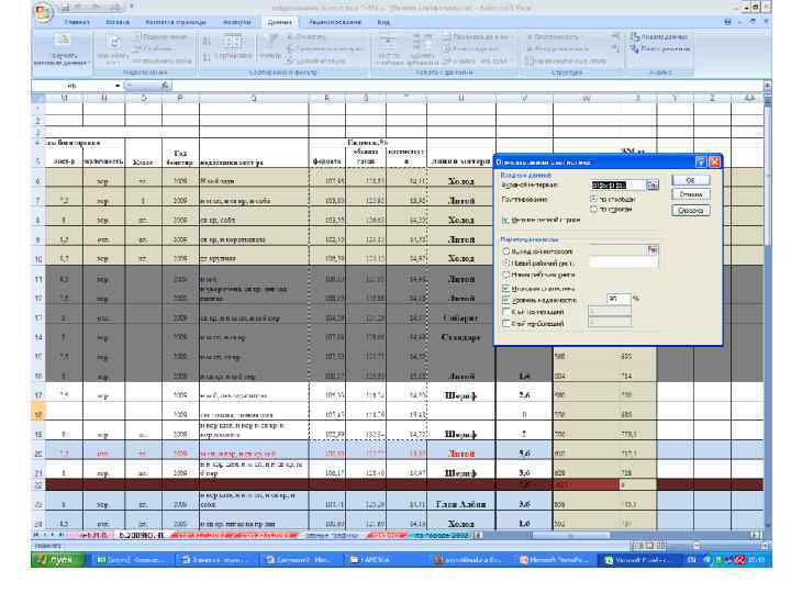 Выбираем входной интервал - выделяем нужные для анализа столбцы или строчки с данными, включая заголовки, группировка - по столбцам/строкам (ставим точку), метки в 1 -ой строке – ставим галку, указываем выходной интервал - выделяем ячейку/на новый рабочий лист (ставим точку), итоговая статистика - ставим галочку, уровень надежности – (95 или 99%), ставить ОК.