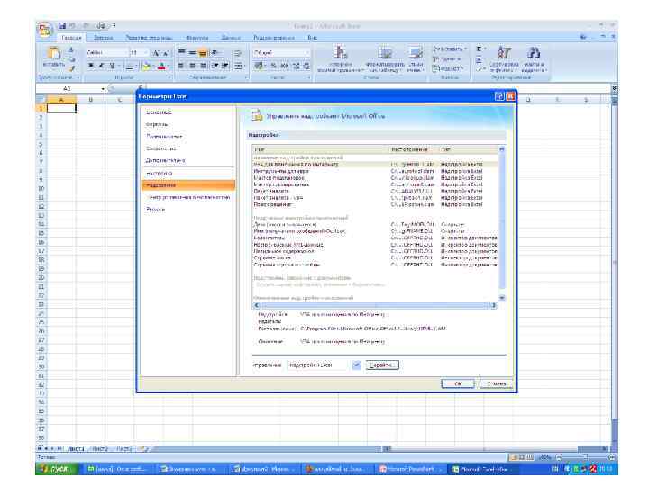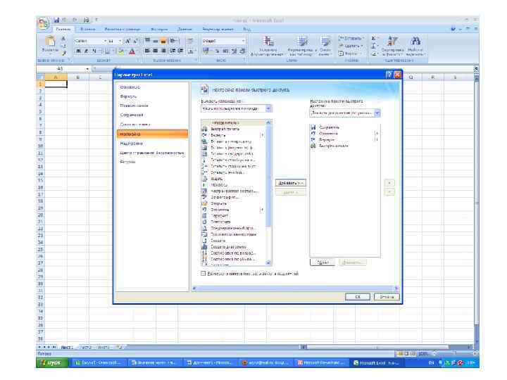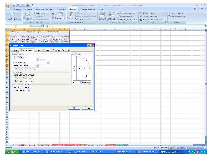 Статистический анализ данных в Excel 2007 осуществляется через панель быстрого доступа (синее поле на уровне вкладок). Панель быстрого доступа /Настройка панели быстрого доступа/Надстройки/Пакет анализа/Надстройки Excel перейти/поставить галочки и ОК После этого действия опция «Анализ данных» становиться доступной.