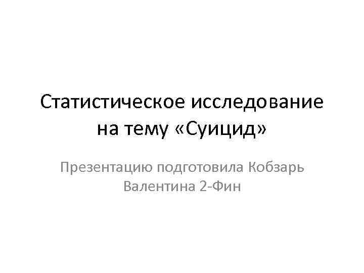 Статистическое исследование на тему «Суицид» Презентацию подготовила Кобзарь Валентина 2 -Фин