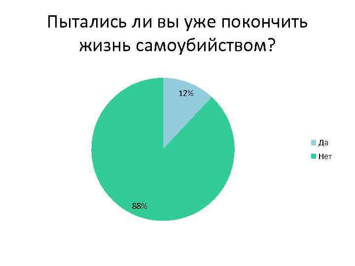 Пытались ли вы уже покончить жизнь самоубийством? 12% Да Нет 88%