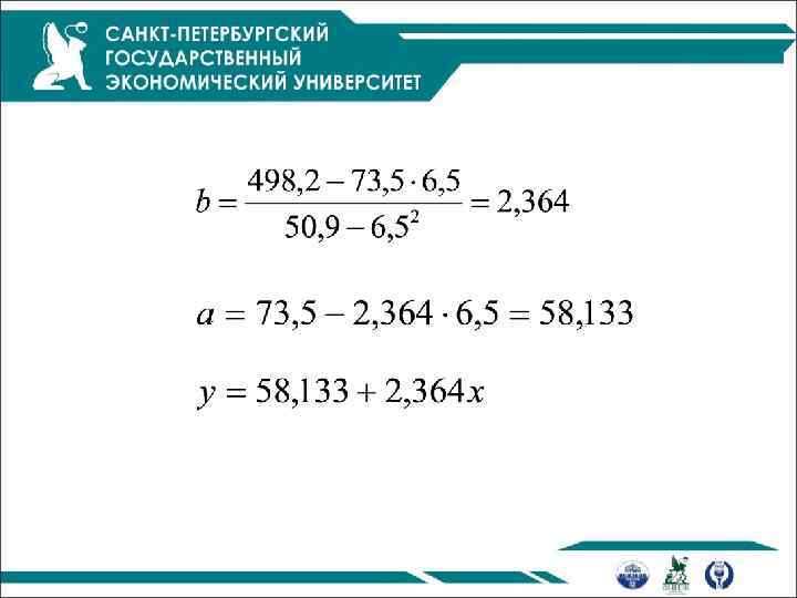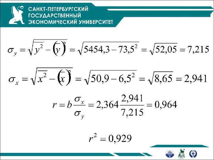 Формулы расчета параметров уравнения парной регрессии • - свободный член уравнения регрессии • - коэффициент регрессии