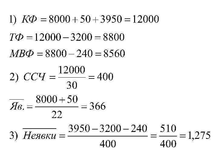 3. 6. По предприятию за апрель имеются следующие данные, чел-дн. : отработано рабочими – 8 000; целодневные простои – 50; всего неявок – 3 950, в том числе в связи с выходными днями – 3 200; очередными отпусками – 240. Рабочих дней в апреле – 22. Определите: 1) календарный, табельный и максимально-возможный фонды рабочего времени; 2) среднюю списочную и среднюю явочную численность рабочих; 3) среднее число дней неявок в составе максимальновозможного фонда рабочего времени в расчете на одного списочного рабочего.