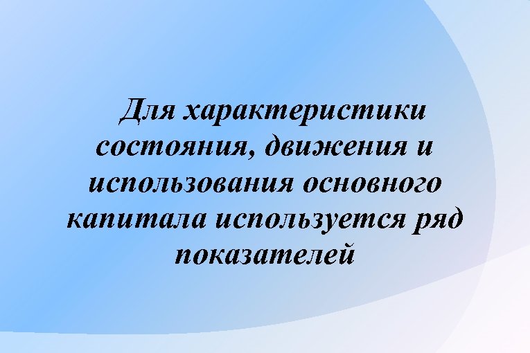 Для характеристики состояния, движения и использования основного капитала используется ряд показателей