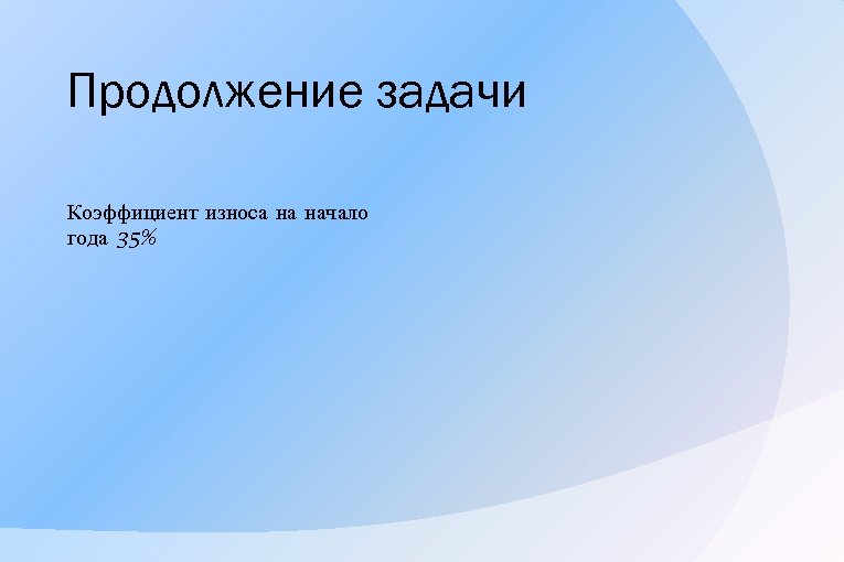 Продолжение задачи Коэффициент износа на начало года 35%