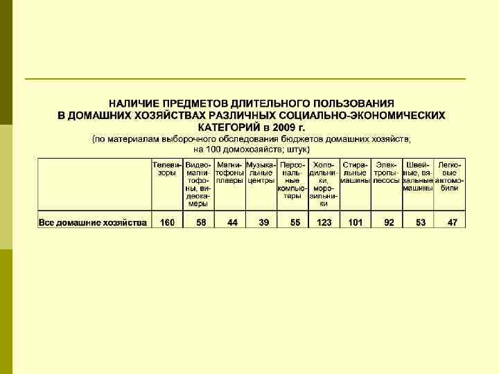 Расходы домашних хозяйств на конеч потребление p p p Расходы на покупку потребительских товаров (кроме домов и квартир) Расходы на оплату потребительских услуг Потребление продуктов в натуральной форме, произведенных домашними хозяйствами для собственного потребления Потребление продуктов, полученных домашними хозяйствами в натуральной форме в качестве оплаты труда Услуги по проживанию в собственном жилище