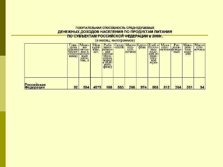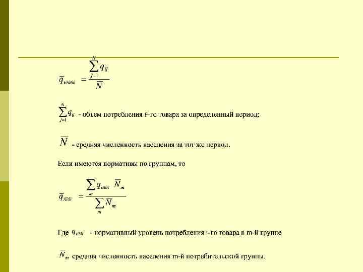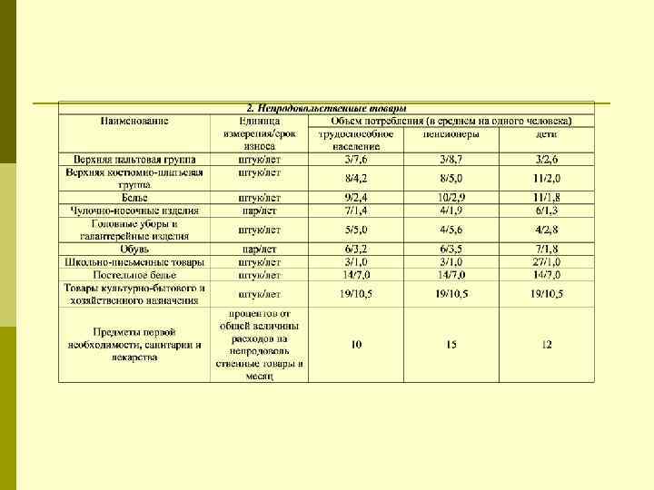Состав потребительских расходов Расходы на покупку продуктов питания (в том числе расходы на питание вне дома) p Расходы на покупку алкогольных напитков p Расходы на покупку непродовольственных товаров и расходов на оплату услуг p