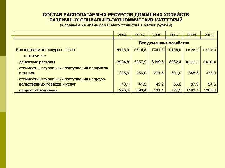 Изучение потребление по выборк домашних хозяйств n n Располагаемые ресурсы домашних хозяйств Денежные расходы и сбережения домашних хозяйств Потребительские расходы домашних хозяйств Расходы на конечное потребление домашних хозяйств