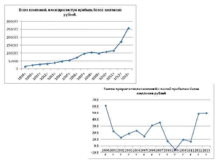 Суммарная (крупные плюс средние) картина по чистой прибыли. С 2012 года идет структурный сдвиг за счет растущих компаний. Годы Процент растущих в чистой прибыли 2009 г 25, 3 2010 г 26, 1 2011 г 23, 1 2012 г 28, 2 2013 г 34, 5