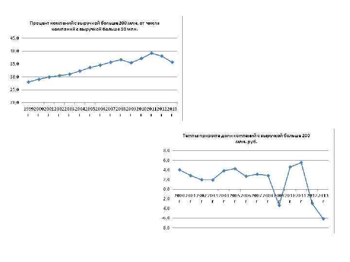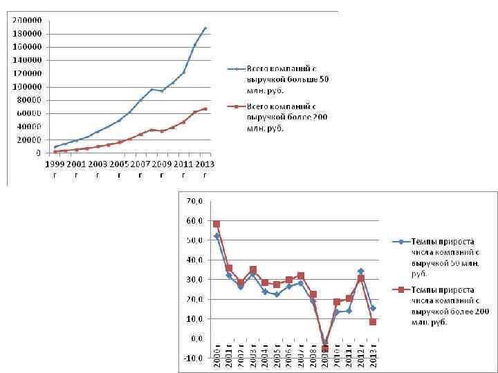 Суммарная выручка крупных и средних компаний. В 2013 году произошел структурный сдвиг из-за растущих компаний. Годы Процент растущих 2009 г 25, 2 2010 г 23, 5 2011 г 23, 5 2012 г 26, 2 2013 г 34, 4