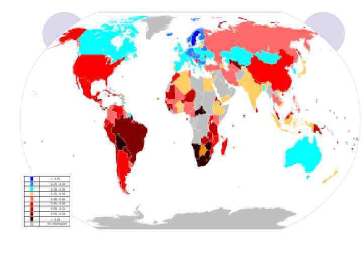 1) Новрегия – 0, 943 2) Австралия – 0, 929 3) Нидерланды – 0, 910 4) США – 0, 910 45) Аргентина – 0, 796 66) Россия (высокий уровень) 101) Китай – 0, 687 (средний)