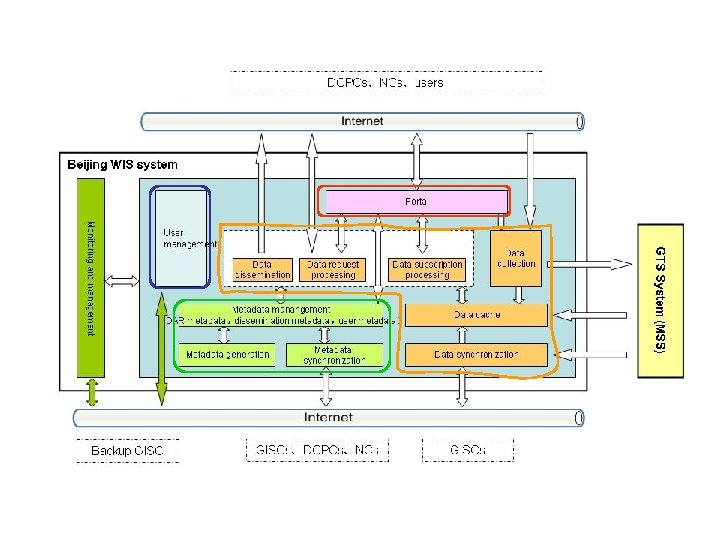 Development of GISC service • Metadata generation • Metadata Synchronization • Metadata search • Data subscription • Data dissemination • Web interfaces To support WIS/GISC’s functions and provide the services of DAR, Data request, Data subscription and GTS data ingest to WIS centers and authorized users.