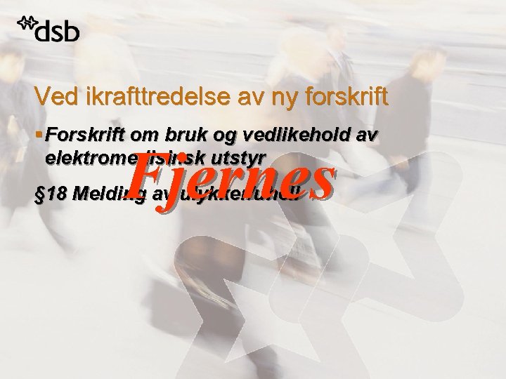 Ved ikrafttredelse av ny forskrift § Forskrift om bruk og vedlikehold av elektromedisinsk utstyr Fjernes § 18 Melding av ulykker/uhell
