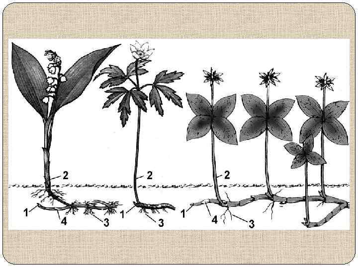 Видоизменения побегов: подземные побеги Корневище — многолетний подземный (иногда полупогруженный) побег (ландыш, пырей ползучий, валериана и др. ). Выполняет функции возобновления, вегетативного размножения и накопления запаса питательных веществ. Внешне напоминает корень, но состоит из метамеров, имеет верхушечную и пазушные почки, редуцированные листья в виде бесцветных чешуй. Узлы обнаруживаются по листовым рубцам и остаткам сухих листьев или по живым чешуевидным листьям. Из стеблевых узлов развиваются придаточные корни. Запасные питательные вещества откладываются в стеблевой части побега.