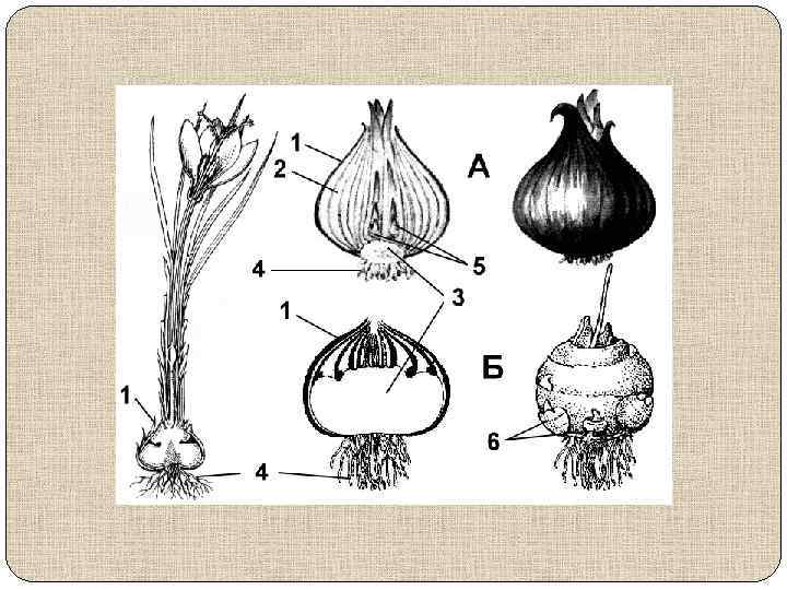 Видоизменения побегов: подземные побеги Луковица. Представляет собой укороченный, главным образом подземный побег (лук, чеснок, лилии). Стеблевая часть луковицы (донце) с сильно укороченными междоузлиями несет многочисленные сочные видоизмененные листья — чешуи. Наружные чешуи быстро истощаются, подсыхают и выполняют защитную функцию. В сочных чешуях откладываются запасные питательные вещества. В пазухах луковичных чешуй находятся почки, из которых формируются надземные побеги или новые луковицы. На донце образуются придаточные корни. Луковица может быть однолетней (лук, кандык) и многолетней (нарцисс, гиацинт).