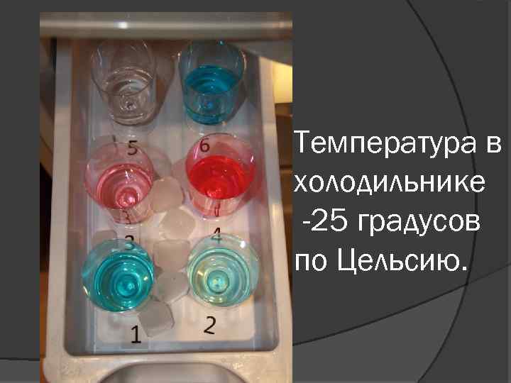 Температура в холодильнике -25 градусов по Цельсию.