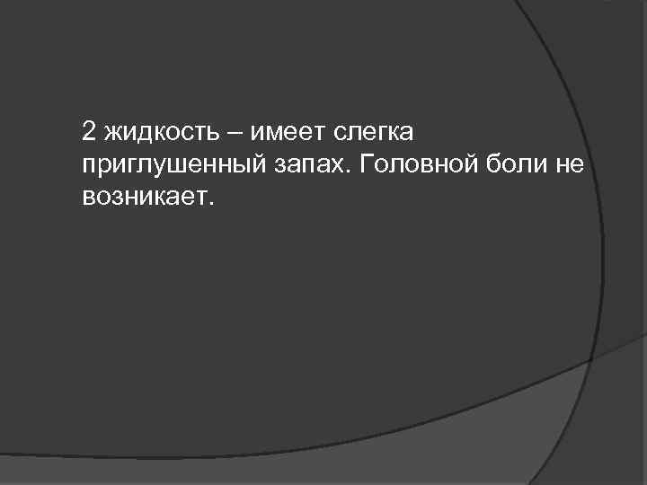 2 жидкость – имеет слегка приглушенный запах. Головной боли не возникает.