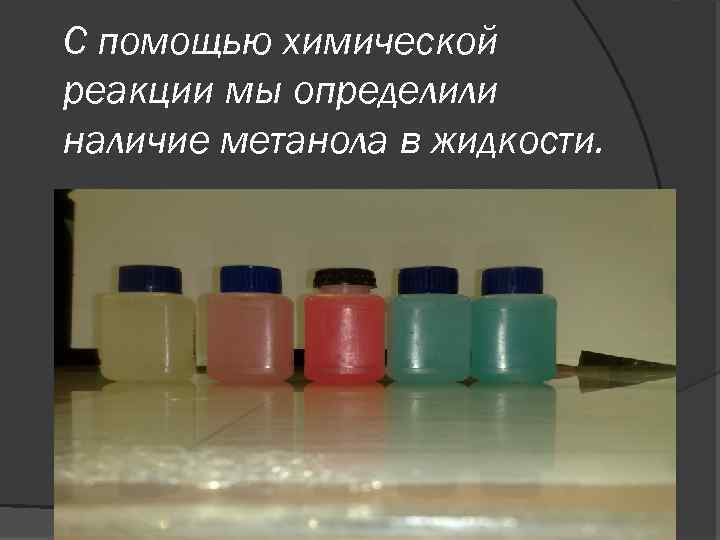 С помощью химической реакции мы определили наличие метанола в жидкости.