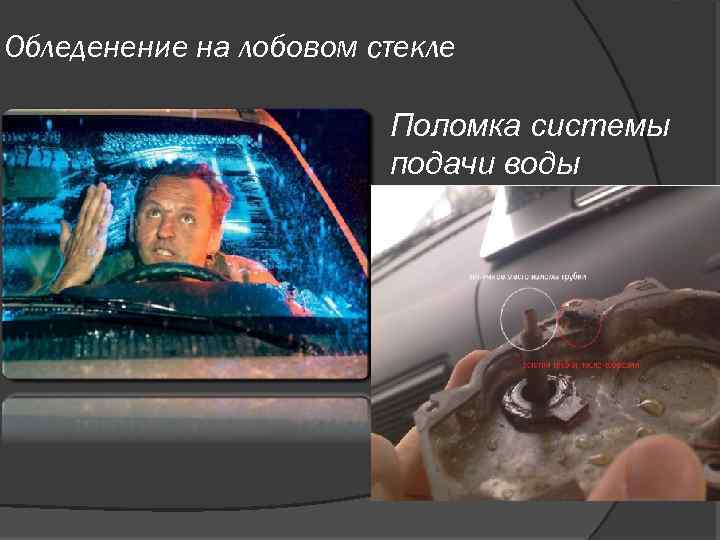 Обледенение на лобовом стекле Поломка системы подачи воды