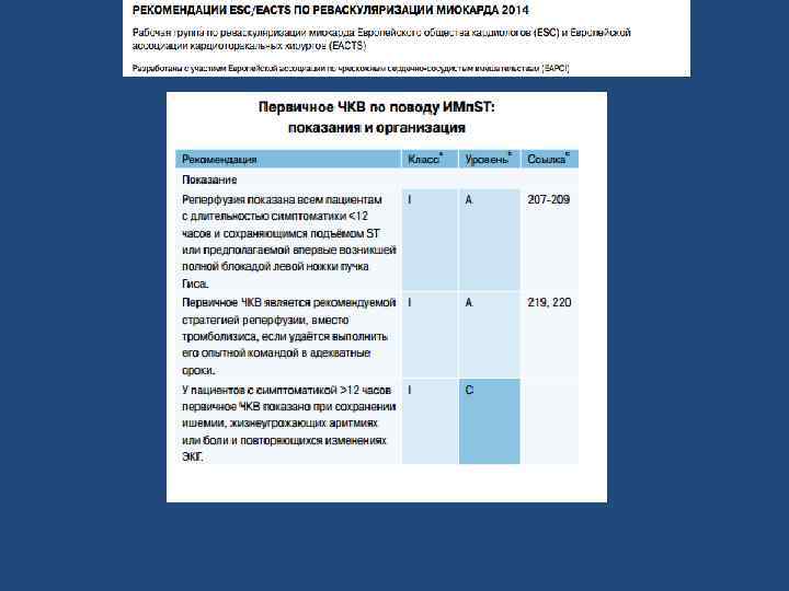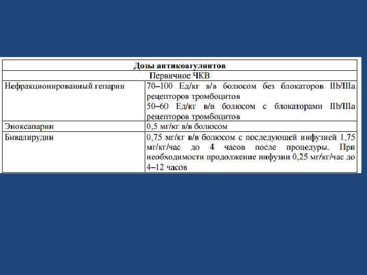 Показания для ЧКВ при ОКСп. ST (ACC/AHA, 2013): 1. Показано пациентам с ОКСп. ST либо с новой БЛНПГ в течение 12 ч от начала симптомов. 2. Кардиогенный шок или отек легких независимо от давности. 3. В период 12– 24 ч при сохранении ишемии миокарда по данным клиники или электрокардиографии. Показания к имплантации стента • Остаточный стеноз более 30% после ЧБКА. • Рестеноз. • Окклюзия коронарных артерий • Обширная диссекция коронарной артерии в процессе ЧБКА. • Стеноз венозного шунта