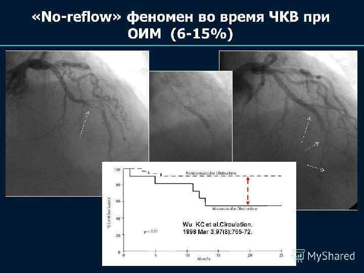NO-REFLOW PHENOMENON определяется как острое нарушение коронарного кровотока не связанное с обструкцией эпикардиального сосуда. Ангиографически он проявляется резким ухудшением коронарного кровотока - низким TIMI GRADE FLOW.