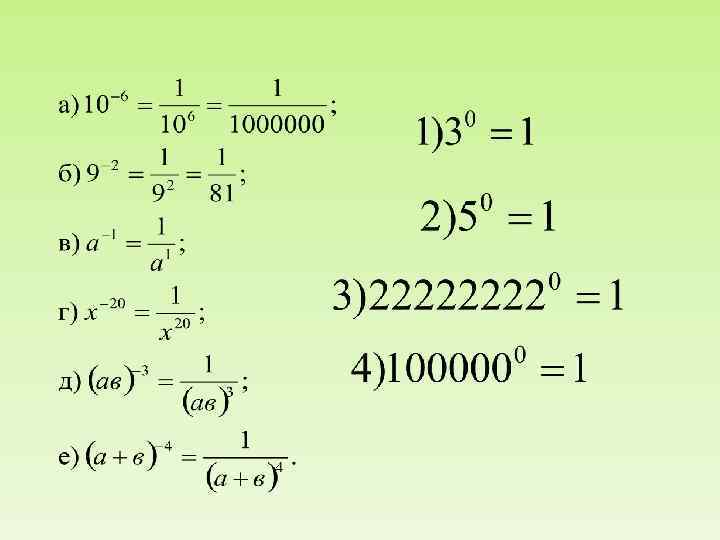 Понятие степени с рациональным показателем Примеры