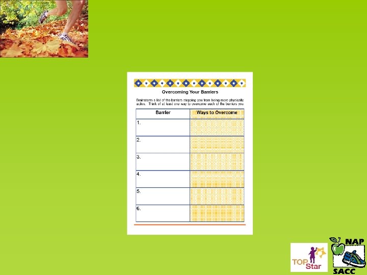 BARRIERS to EXERCISE… BRAINSTORM some Barriers in your life and ways to over come these Barriers