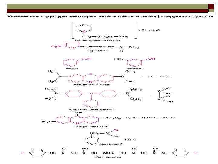 Группы дезинфицирующих средств: o o o o o Хлор; Йод; Спирты; Фенолы; ЧАС (четвертичные аммонийные соединения); Гуанидины; Пероксиды; Надкислоты; Альдегиды (глутаровый и янтарный альдегид); Третичные амины или амфотензиды.