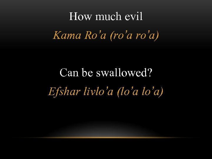 How much evil Kama Ro’a (ro’a) Can be swallowed? Efshar livlo’a (lo’a)