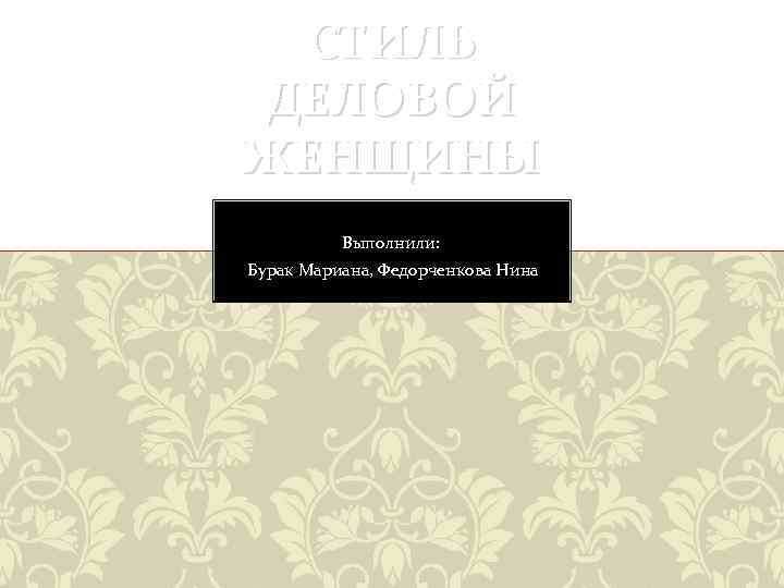 СТИЛЬ ДЕЛОВОЙ ЖЕНЩИНЫ Выполнили: Бурак Мариана, Федорченкова Нина