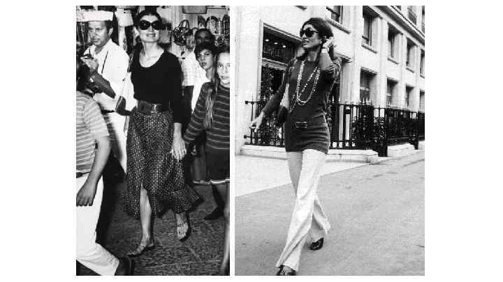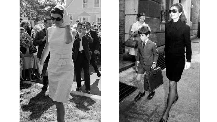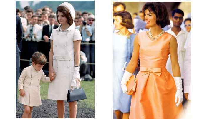 Жаклин Бувье Кеннеди Онассис - Платья-трапеции, платья А-силуэта, платьярубашки - Костюмы двойки прямого покроя - Отсутствие рукава или длина 3/4 - Перчатки - Брючки-капри или длинный клеш - Крупные солнцезащитные очки - Шелковый платок-каре - Маленькие сумочки