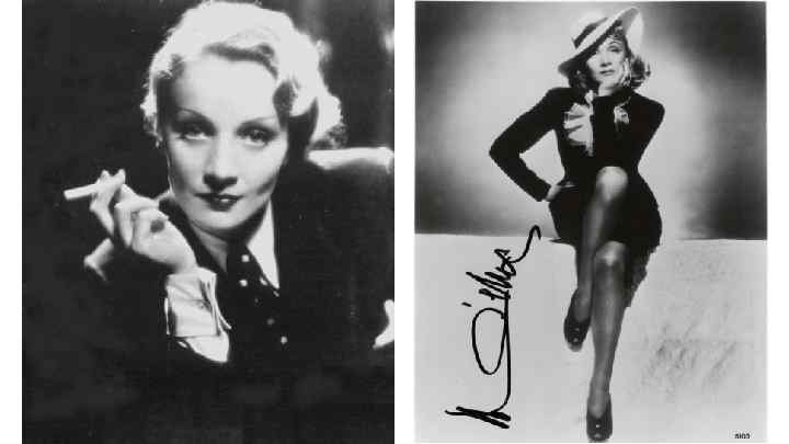 Марлен Дитрих: - Мужской костюм и аксессуары - Шляпы - Крупные украшения ар-деко - Игра на контрастах - Светлые локоны - Маникюр - Макияж