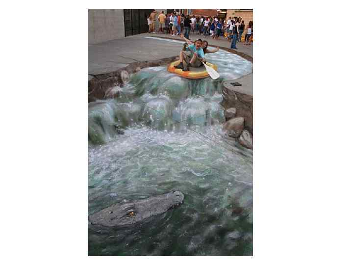 3 D рисунки на асфальте – рисунки выполнены мелками с использованием специальной техники искажения и наклона, которая позволяет создать иллюзию объемной картины.