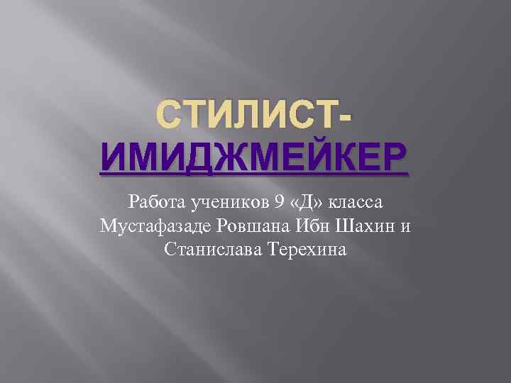 СТИЛИСТИМИДЖМЕЙКЕР Работа учеников 9 «Д» класса Мустафазаде Ровшана Ибн Шахин и Станислава Терехина