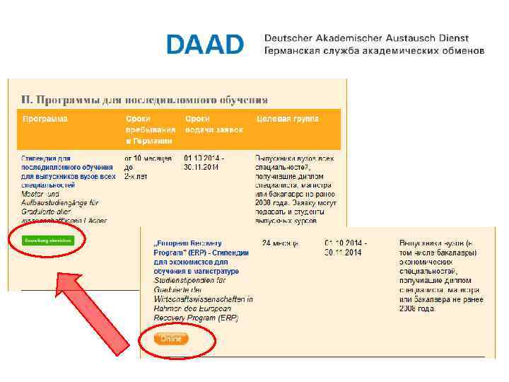 Главные источники для Вас: www. daad. ru www. daad. de/deutschland/stipendium/datenbank/en/2114 8 -scholarship-database/