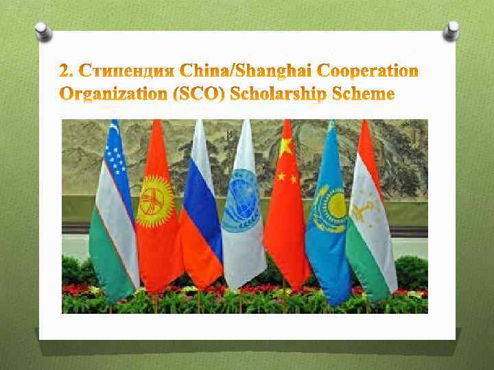 Стипендия, учрежденная Министерством образования КНР для граждан стран-участников ШОС (Шанхайская Организация Сотрудничества), с целью поощрения студентов из этих стран учиться в Китае. Страны-участники ШОС: Россия, Казахстан, Киргизстан, Таджикистан, Узбекистан. Получатели стипендии направляются на обучение в 94 отобранных государственных вузаx, где можно изучать в общей сложности около 300 специальностей. Целевая группа: Выпускники школ, проходящих обучение в Китае по программам бакалавриата, магистратуры, докторантуры, стажировку как младшие/старшие научные сотрудники на китайском или английском языках. Для кандидатов, выбравших обучение на китайском языке, но не имеющих достаточного языкового уровня, предоставляется возможность пройти предварительную языковую подготовку в течении 1 -2 лет.