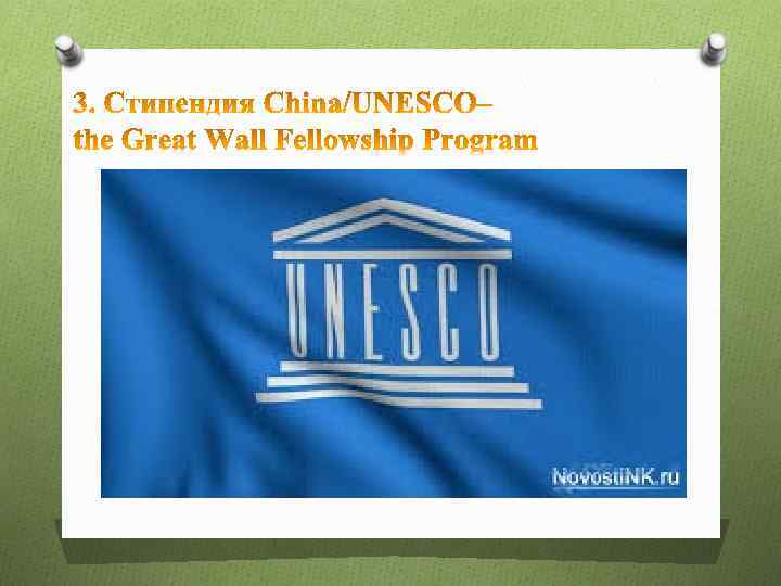 Требования к кандидатам: • Иностранное гражданство, хорошее здоровье. • general scholar – 2 года обучения по программе бакалавриата, возраст до 45 лет • senior scholar – степень мастера, ученое звание доцента и выше, возраст до 50 лет Организация, предоставляющая стипендию: China Scholarship Council Срок подачи заявки: с 1 января по 30 апреля ежегодно. Заявку подавать через Национальные Комиссии UNESCO в своей родной стране. Размер стипендии: 1700 юаней/месяц для general scholar, 2000 юаней/месяц для senior scholar Подробная информация: http: //www. csc. edu. cn/laihua/scholarshipdetailen. aspx? cid=97&id=2051 Контактная информация: Mr. Jhaycee Manansala Fellowship Program Section, UNESCO T: +331 45681417 Email: j. manansala@unesco. org