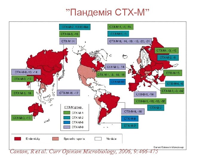 ”Пандемія CTX-M” Canton, R et al. Curr Opinion Microbiology, 2006, 9: 466 -475