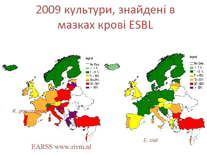 2009 культури, знайдені в мазках крові ESBL K. pneumoniae EARSS www. rivm. nl E. coli