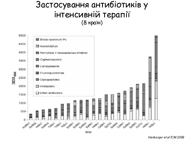 Застосування антибіотиків у інтенсивній терапії (8 країн) Hanberger et al ICM 2008