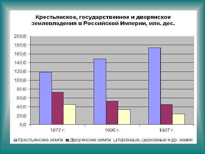 Цели аграрной реформы • 1. Создать в деревне прочную опору для самодержавия из крепких собственников, отколов их от основной массы крестьянства и противопоставив их ей; • 2. Обеспечить подъем сельского хозяйства и дальнейшую индустриализацию страны, чтобы ликвидировать отставание от передовых держав • 3. Разрушить общину Недовольство крестьян и помещиков.