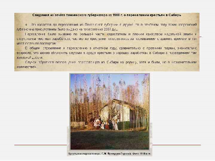 «Результаты аграрной политики П. А. Столыпина» . Создание новых форм землевладения и землепользования. Положительные результаты -К 1916 г. из общины выделилось 2527% крестьянских дворов, было создано 1, 6 млн. хуторов и отрубов. - Рост с/х производства (к 1915 г. сбор зерна вырос в 1, 7 раза), совершенствовани е агротехники. - Рост экспорта хлеба. Отрицательные результаты Община не была разрушена. Из неё вышло 25% крестьянских хозяйств. - Ускорился процесс расслоение крестьянства. - Возросли противоречия в деревне. - Переселение крестьян. Развитие крестьянской кооперации. Положительные результаты -За Урал переселилось более 3 млн. крестьян. - Освоено 30 млн. десятин целинных земель. Развивалась крестьянская кооперация. Отрицательные результаты -Проблема малоземелья не была решена. - 16% крестьян вернулись назад. - Конфликты переселенцев с местным населением.